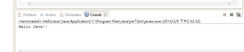 執行功能表的「Run®Run As®Java Application」命令,即可編譯並執行程式。
